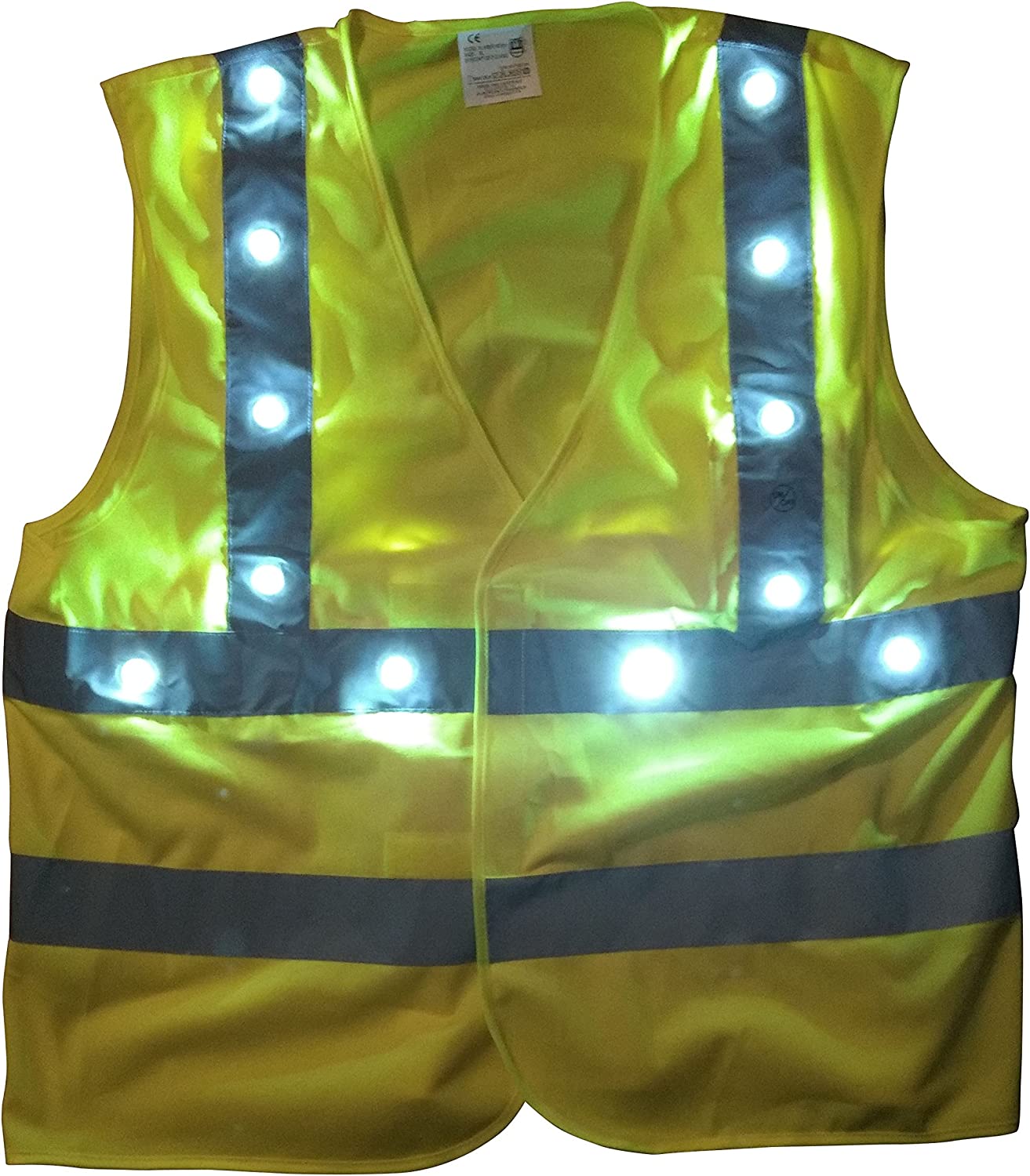 Gilet Jaune Pro de Sécurité Fluo à 11 LEDs Blanches Rouges Deluxe