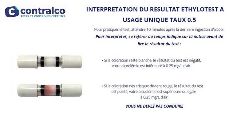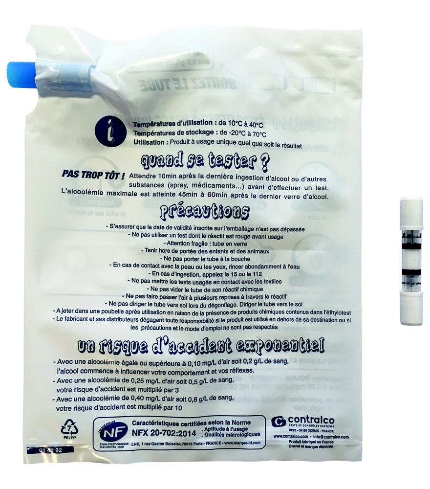 Ethylotest à usage unique Conforme NF Taux 0,50 Standard