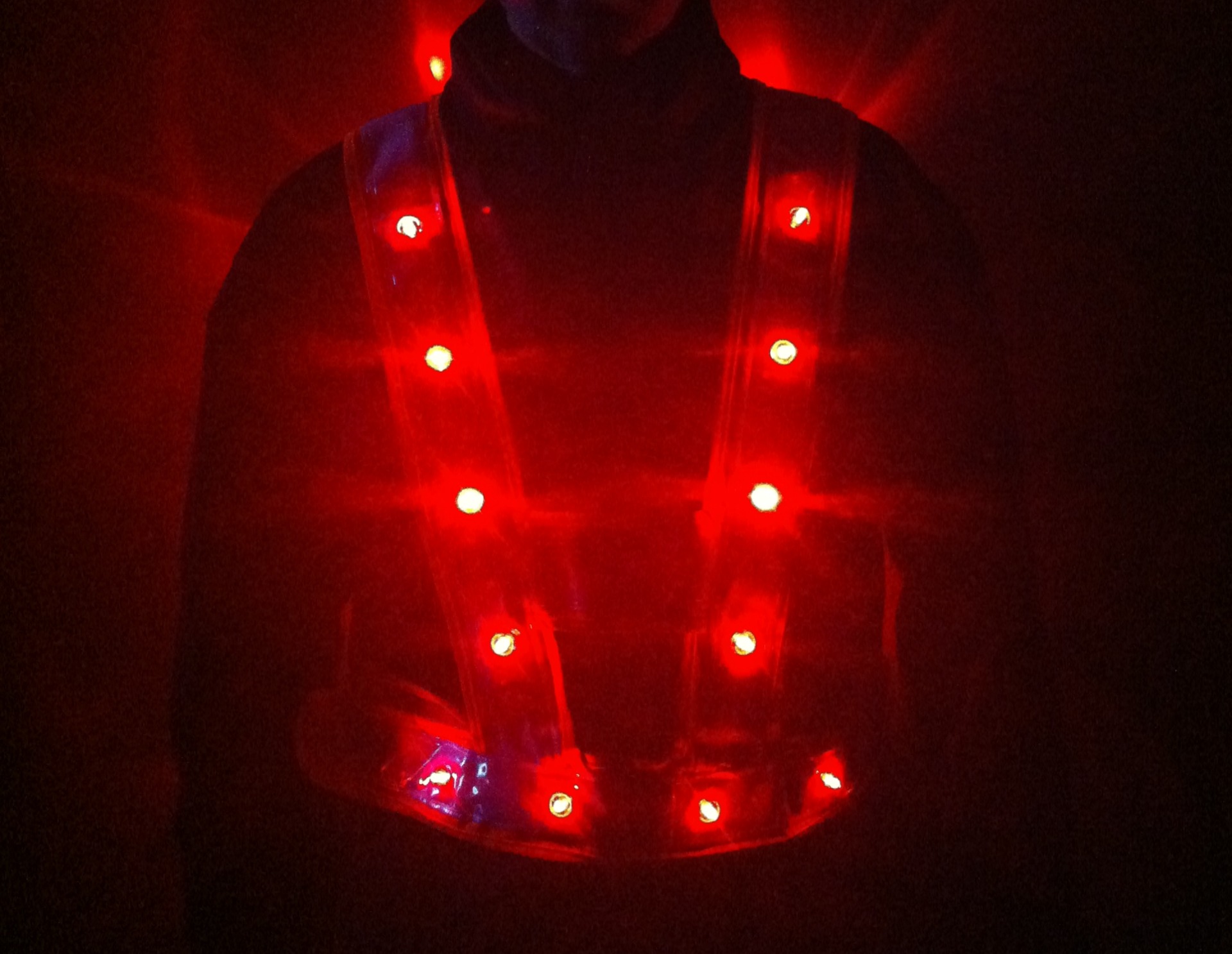 Gilet Baudrier Orange PRO de Sécurité Fluo à 24 Leds rouges DELUXE