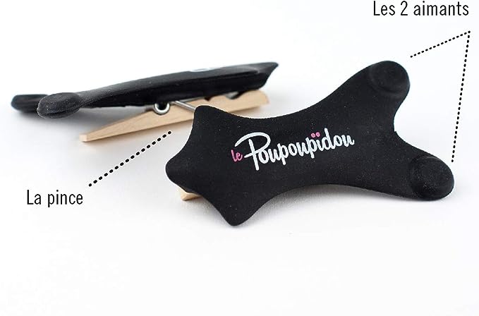 Le Poupoupidou se présente sous la forme d'une coque souple dans laquelle s'insère une pince en bois et deux puissants aimants permettant de fixer le Poupoupidou sous la selle.