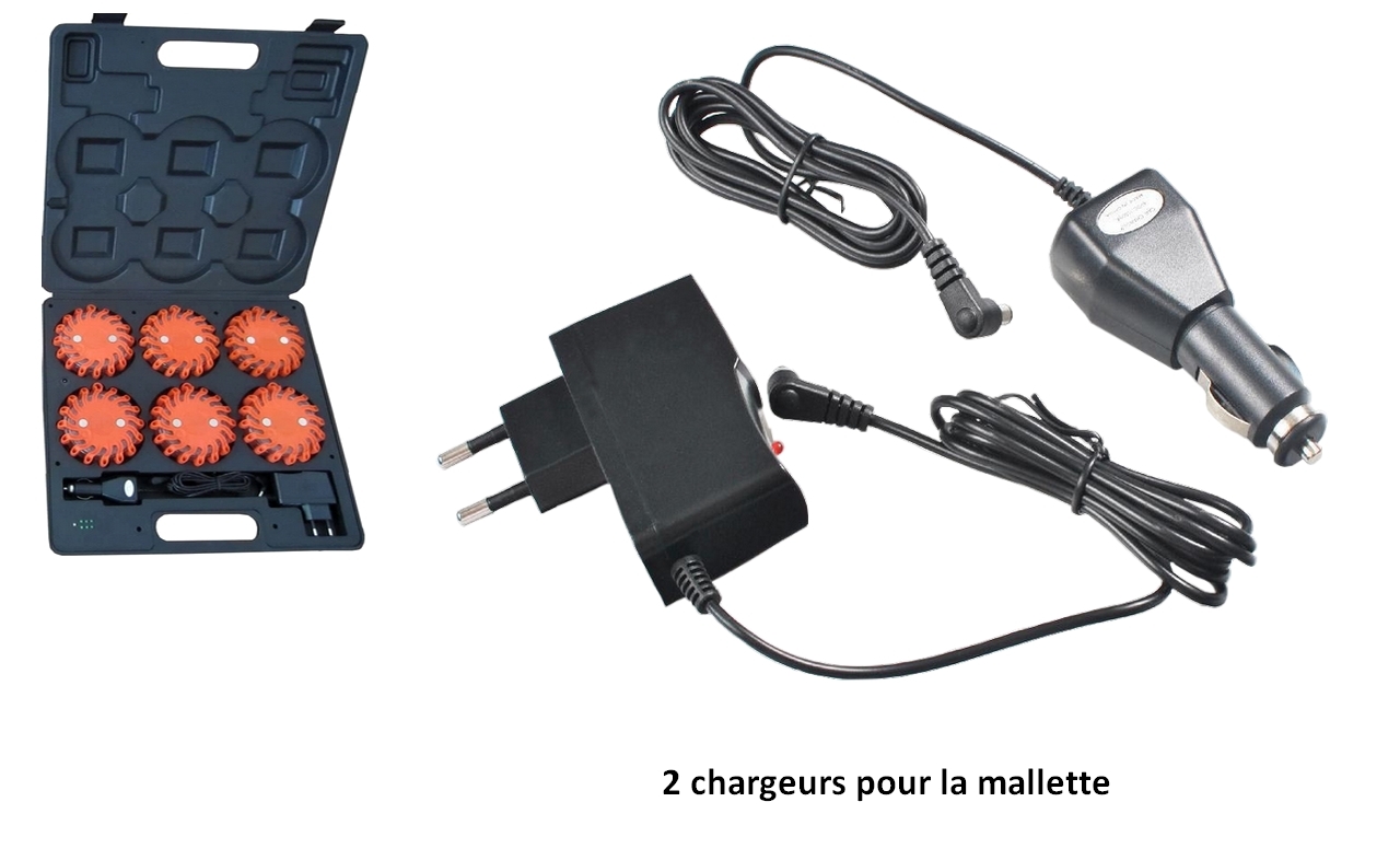 Mallette de 6 balises Pro gyrophare de signalisation PRO à 16 Leds orange rechargeable