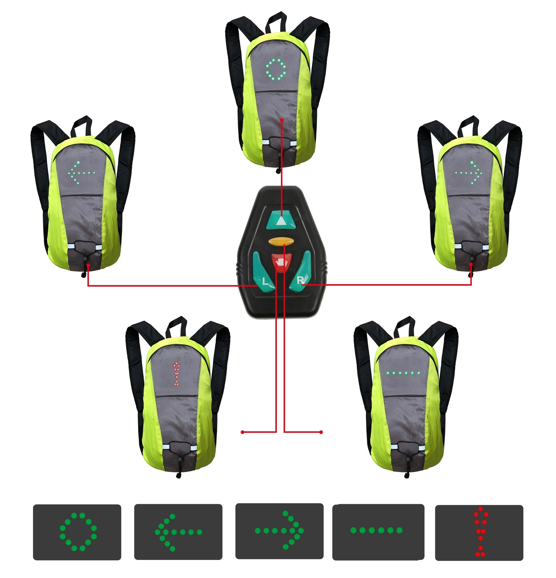 Sac à dos 15L à Leds réfléchissant avec Signalisation de Direction pour Vélo et Trottinette. Télécommande et USB rechargeable