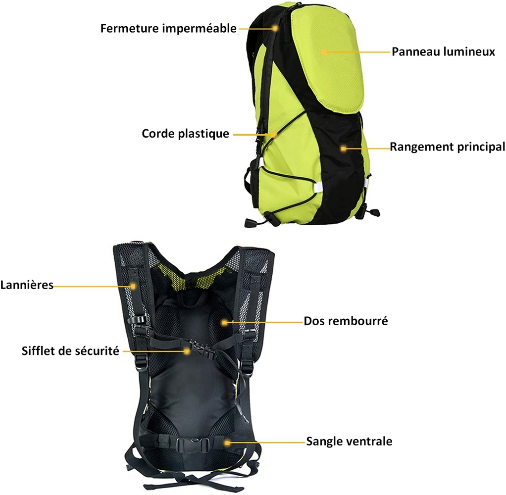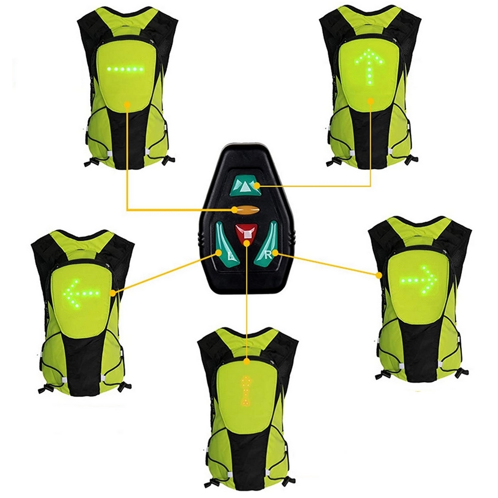Sac à Dos Jaune 5L à 48 LEDs Clignotant réfléchissant avec Signalisation de Direction pour Vélo et Trottinette. Télécommande et USB Rechargeable.