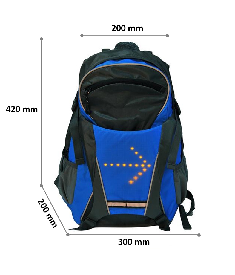 Sac à dos bleu 18 Litres à Leds avec Signalisation de Direction pour Vélo et Trottinette. Télécommande et USB Rechargeable.