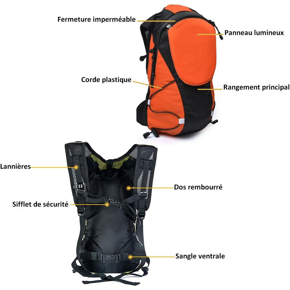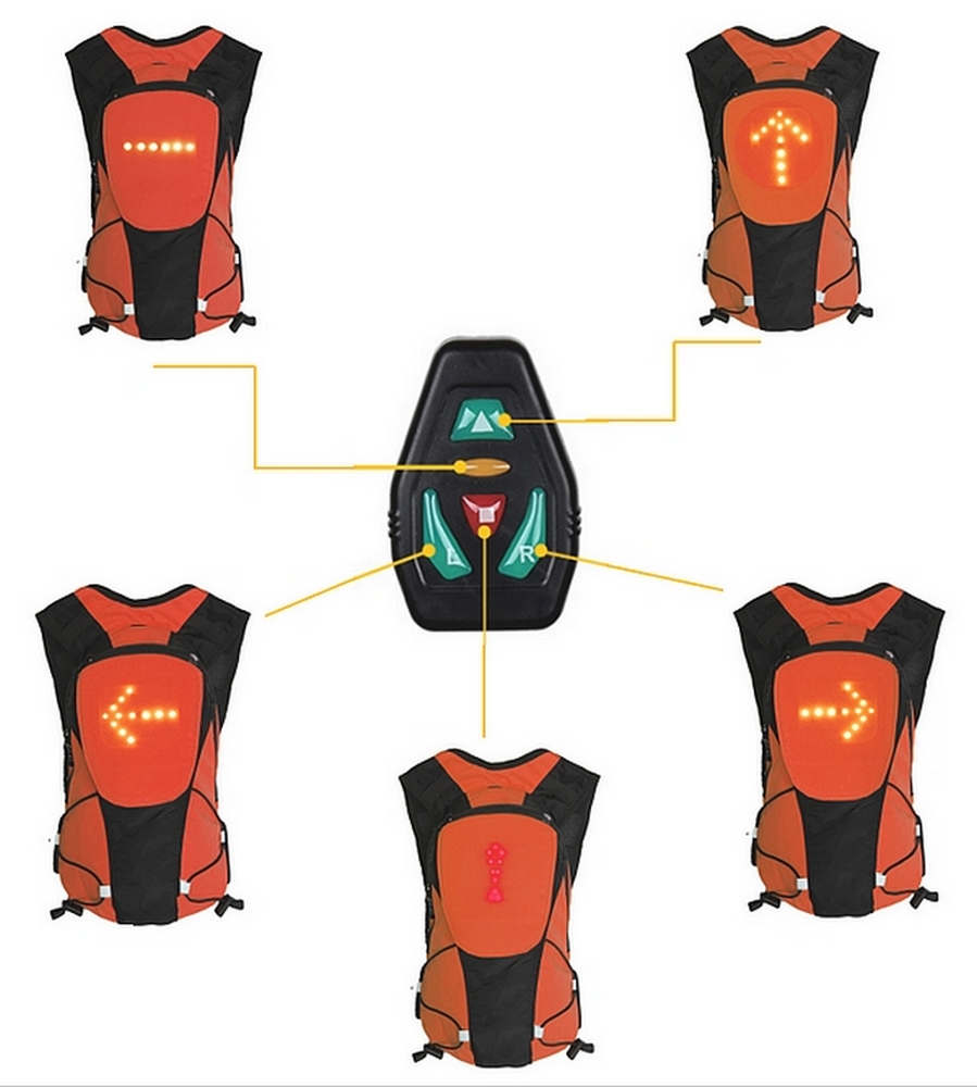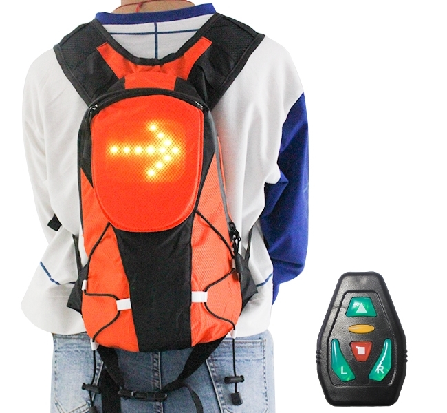 Sac à Dos Orange 5L à 48 LEDs Clignotant réfléchissant avec Signalisation de Direction pour Vélo et Trottinette. Télécommande et USB Rechargeable.