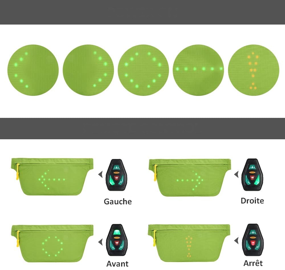 Sac Banane a LEDs réfléchissant avec Signalisation de Direction pour Vélo et Trottinette. Télécommande et USB Rechargeable.